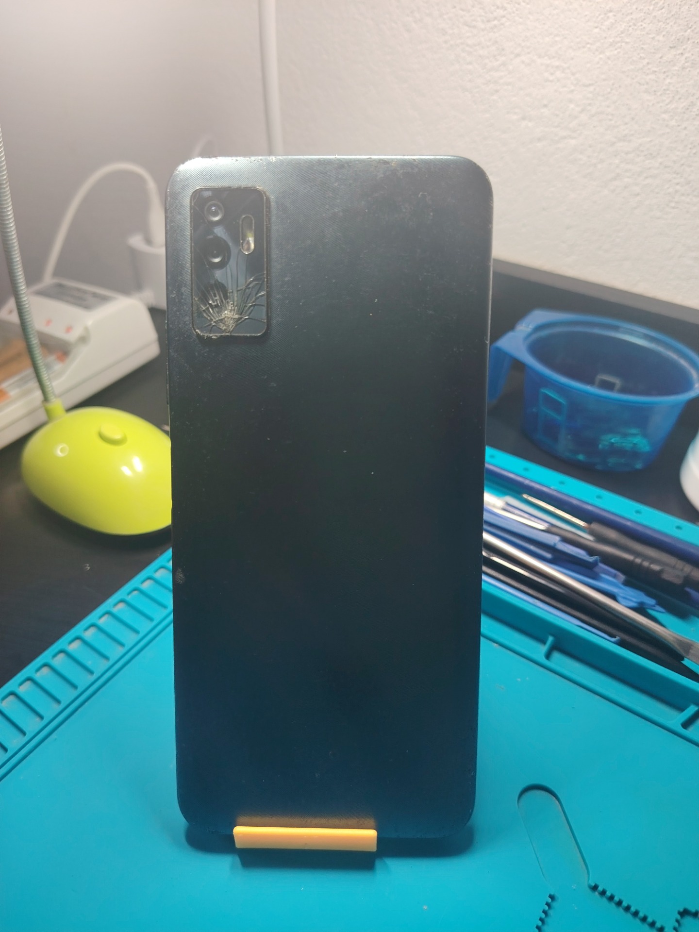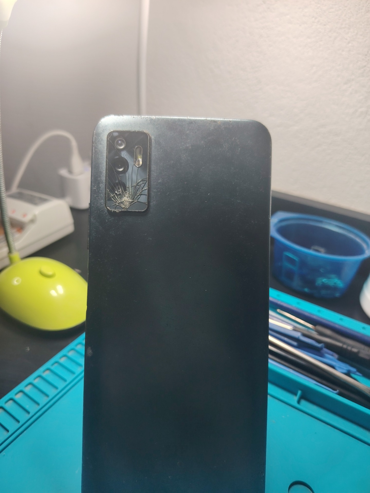 Detalles: Los que se ven en la foto. (Cristal trasero de cámara y pantalla astillados y sensor de proximidad no le funciona, no afecta funcionamiento)